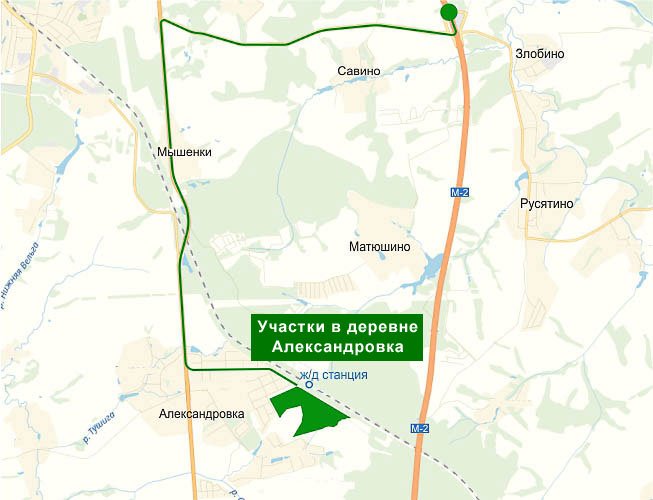 Добраться до деревни Александровка можно на машине от Москвы по Симферопольскому шоссе - 84 км, так же можно на электричке до ж/д станции "132 км", затем всего 5 минут пешком до деревни. У участка вид разрешенного использования - для дачного строительства, поэтому можно построить жилой дом.