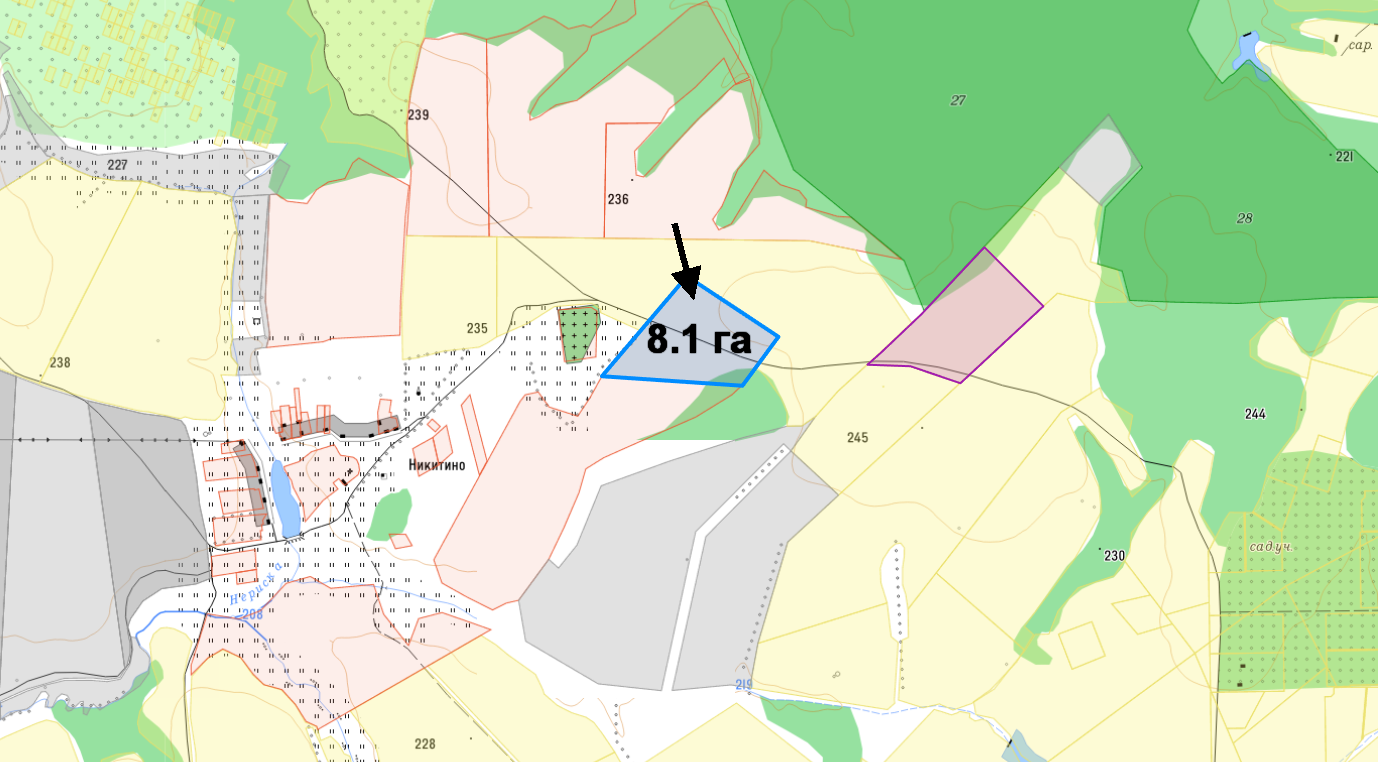 Продается земельный участок площадью 8.1 га, расположенный в деревне Никитино Заокского района Тульской области. Участок находится в зоне Ж1. В ближайшей доступности (1 км) от деревни Никитино имеется вся основная инфраструктура и коммуникации. Рядом расположены крупные города: Алексин (30 км) и Тула (45 км).