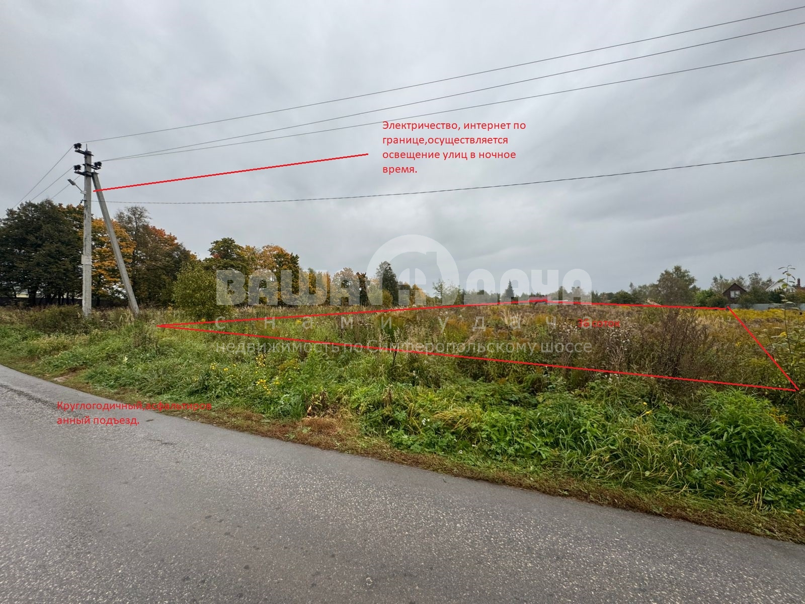 Продаётся земельный участок площадью 30 соток Категория: Земли населённых пунктов, Вид разрешенного использования: для ведения личного подсобного хозяйства. Тульская область Заокский район село Домнино 110 км от МКАД по Симферопольское шоссе. Участок ровный, находиться на возвышенности, правильной формы, круглогодичный подъезд к участку осуществляется о асфальтированной дороге, зимой дороги чистит администрация, Электричество проходит по границе участка, есть возможность подключения по федеральной программе, выделяемая мощность 15 кВт, стоимость подключения с установкой прибора учёта 75 000 рублей. Так же по границе участка проходит интернет кабель, провайдер НТС. Осуществляется освещение улицы в ночное время, соседи живут круглогодично, есть возможность добраться до участка общественным транспортом, на автобусе от ж/д станции Тарусская, автобусная остановка в 300 метрах от участка, либо на электричке от Москвы до ж\д платформы «станция 132 километр», до участка от платформы пешком 20 минут ходьбы. В 2025 году осуществлена догазификация села Домнино по федеральной программе «Догазификации», газовая линия подведена к границе участка, подключение реально, подача заявления на подключение к газовой сети и технические условия выдаются по заявлению бесплатно. В 300 метрах от участка располагается большой и чистый пруд пригодный для купания и рыбалки. В деревне есть продуктовые магазины, а так же в ближайшее время планируется открытие магазина «Пятёрочка» в 15 минутах ходьбы от участка. Документы оформлены и готовы к сделке. Кадастровый номер участка: 71:09:030303:674 ЦЕНА: 900 000 рублей. |