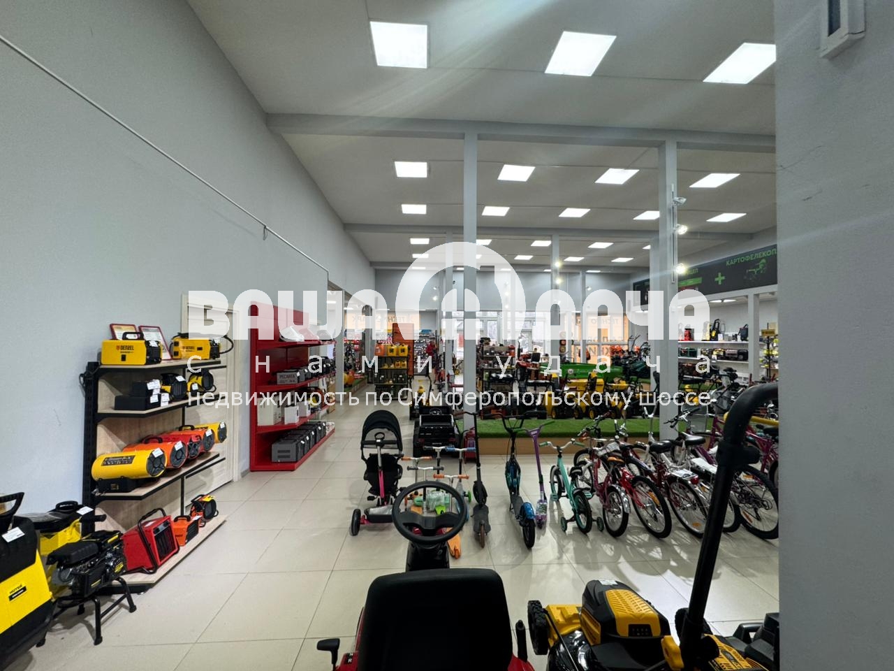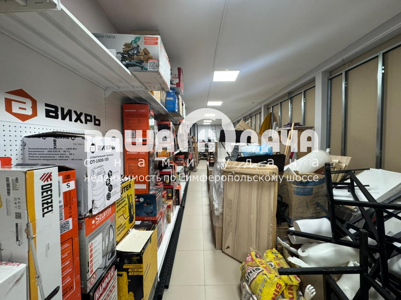 Продаётся готовый магазин, зарегистрированный, площадью 445 м2, на участке 30 соток, из которых 15 соток имеют назначения промышленное, а 15 соток ИЖС, магазин построен на 15 сотках под промышленное назначение. Тульская область Заокский район посёлок Заокский улица Шоссейная, 100 км от МКАД по Симферопольскому шоссе. Магазин построен на металлических сваях, по каркасной технологии, утепление, крыши, пола и стен 200 мм. Здание обработано огне-био защитой и покрашено, год строительства 2018. Электричество заведено в здание. Выделенная мощность 15 кВт, есть возможность увеличения мощности, вода – колодец, канализация септик (переливные кольца), так же заведены в здание. Отопление электрическое, осуществлялось при помощи тепловых пушек, так же подключен высокоскоростной интернет. В здании оборудован сан-узел, есть подсобное помещение, склад и комната персонала, установлено видеонаблюдение по периметру и внутри помещения. Удобная транспортная доступность, круглогодичный подъезд по асфальтированной дороге, удачное расположение в очень проходимом месте. Есть возможность подключения газа, линия проходит по границе участка. Территория огорожена забором из металлопрофиля. Можно рассмотреть покупку магазина с находящимся внутри товаром (садовая техника и инструмент), цена договорная на весь товар. Документы оформлены и готовы к сделке. Кадастровый номер участка: 71:09:010503:410. Кадастровый номер здания:71:09:010503:708.