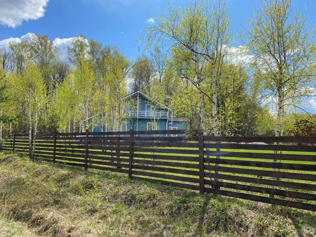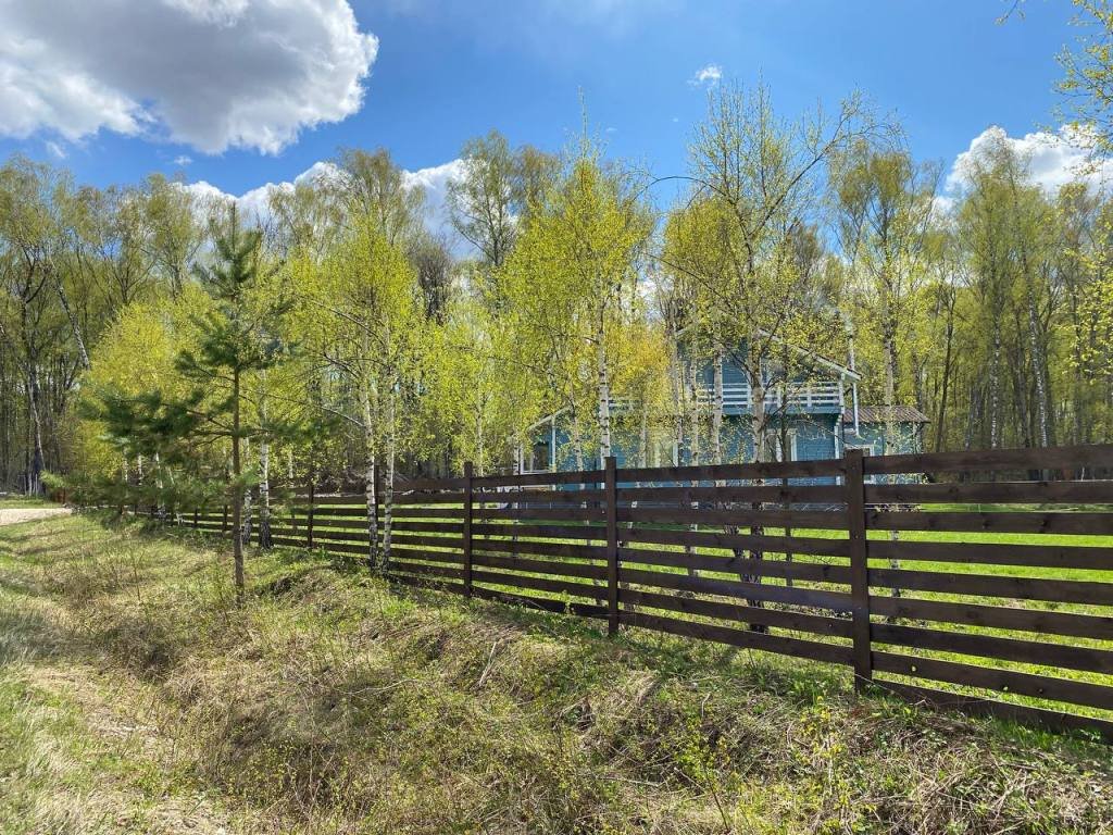 Участок граничит с лесом, только один сосед с боку, непосредственно на участке много деревьев.